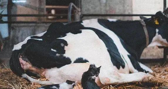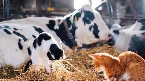 牧场里养着几十头乳牛,生活得悠哉悠哉。草地宽敞,牛棚暖和,日子过得舒坦。几年前,几只流浪猫不知从哪冒出来,先是偷偷跑来蹭点吃的,后来天冷了,索性在牛棚里安了家。乳牛脾气好,压根不嫌弃这些不速之客。饲养员看它们相处得和气,也没赶猫,心想冬天不好过,多个伴儿也不错。